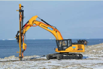 全液壓挖改鉆優勢:無需更改油路系統,利用液壓分配閥,能實現挖掘機和鉆機之間的轉換,不影響挖掘機的本身性能,間接地實現了一機多用,可以進行挖土、鉆孔、鑿巖等作業,從而使挖機鉆機快捷易換,快接快插。使用自動化液壓系統,使鉆孔在巖石上的速度遇硬則慢、遇軟則快,實現液壓鉆孔軟著陸,實現鉆孔智能化,減少機械變速的故障率。鉆孔性能良好,能實現不同地層條件下的鉆孔作業,即使在復雜地層鉆孔也有很好的鉆進能力。作業半徑大且靈活自如,大臂的伸展和挖掘機的360°無死角旋轉使其更加靈活。